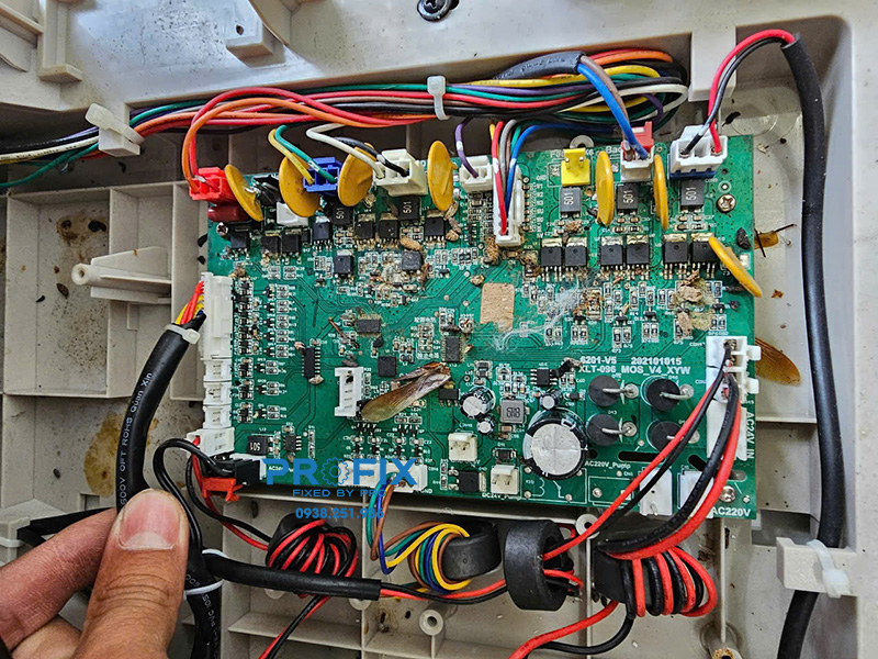 Nếu nghiêm trọng, chuột có thể cắn trúng bo mạch chính, làm hỏng mạch điện tử, gây chập cháy hoặc lỗi hệ thống. Đây là lỗi hư hỏng nặng, cần gọi ngay 0938.251.936 để Profix điều phối kỹ thuật viên có chuyên môn đến tận nơi kiểm tra, thay thế hoặc sửa chữa bo mạch.